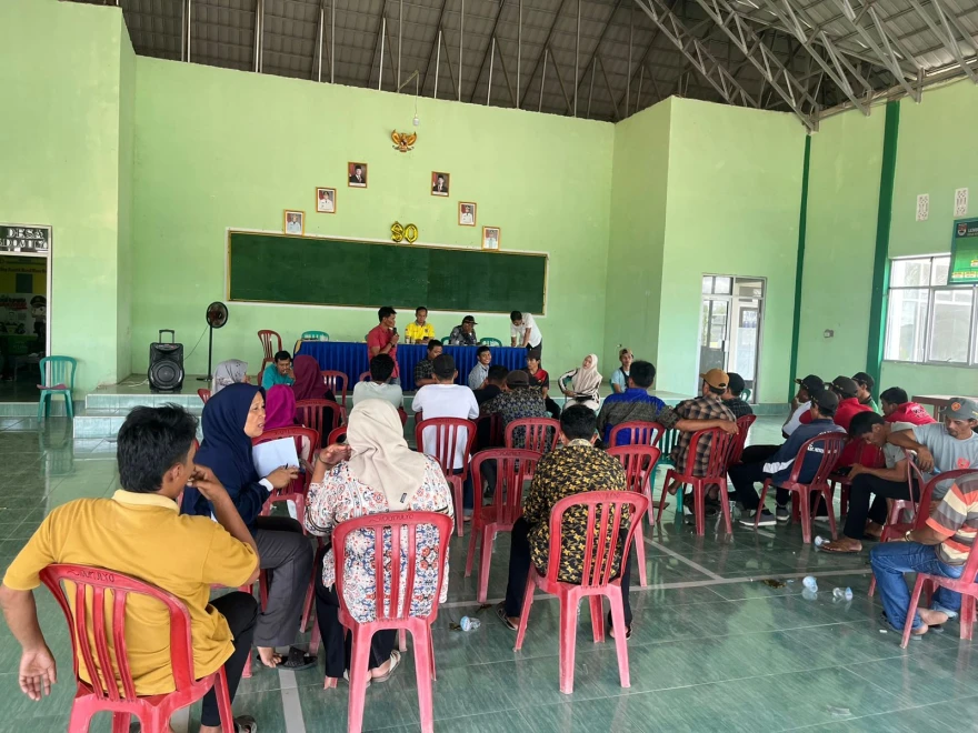 Musdes Pemilihan Pengurus BUMDes Ketahanan Pangan Digelar dengan Sistem Voting Di Balai Desa Sido Mulyo.